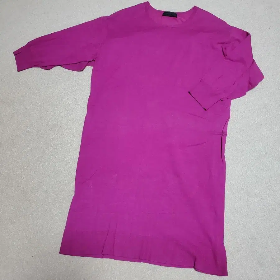 선명한 핑크색 니트 원피스, 7부 소매 디자인으로 쾌적한 착용감. 등에서 소매까지 프릴이 있습니다. 앞에서 보면 심플한 디자인입니다. 택에는 페티코트라고 쓰여 있지만, 분실했습니다. 니트 본체의 소재 표시는 없지만, 약간 시원한 촉감이므로 레이온과 면 소재가 아닐까 생각합니다. 얇은 니트이므로 봄/가을에 적합한 느낌입니다. 사이즈는 44 가슴 너비 54 옷깃에서 소매 길이 59 기장 96 눈에 띄는 얼룩은 없어 보이지만, 접힌 주름이 있습니다. 구제 의류에 이해해 주시는 분께 양도하고 싶습니다. - 색상: 핑크 - 브랜드: UNFILO 자유구 방문해 주셔서 감사합니다. 색상 - 핑크 계열 패턴 - 무지
