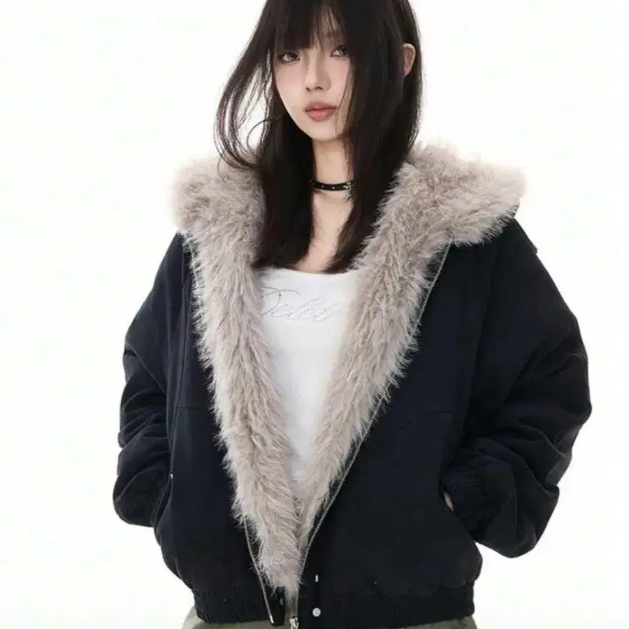 퍼가 달린 블랙 봄버 자켓으로, 지퍼 개폐가 특징입니다. - 색상: 블랙 - 후드 소재: 퍼 - 스타일: 봄버 자켓 - 특징: 지퍼 개폐 방문해 주셔서 감사합니다.