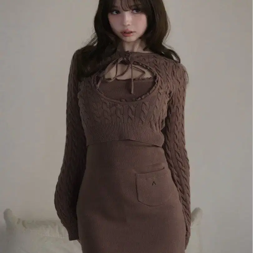 andmary Emma ribbon set up 미개봉 새상품 앤드마리 온라인 구매 정품입니다. 색상: 브라운 ATM, 편의점 결제 불가 중간 취소 불가
