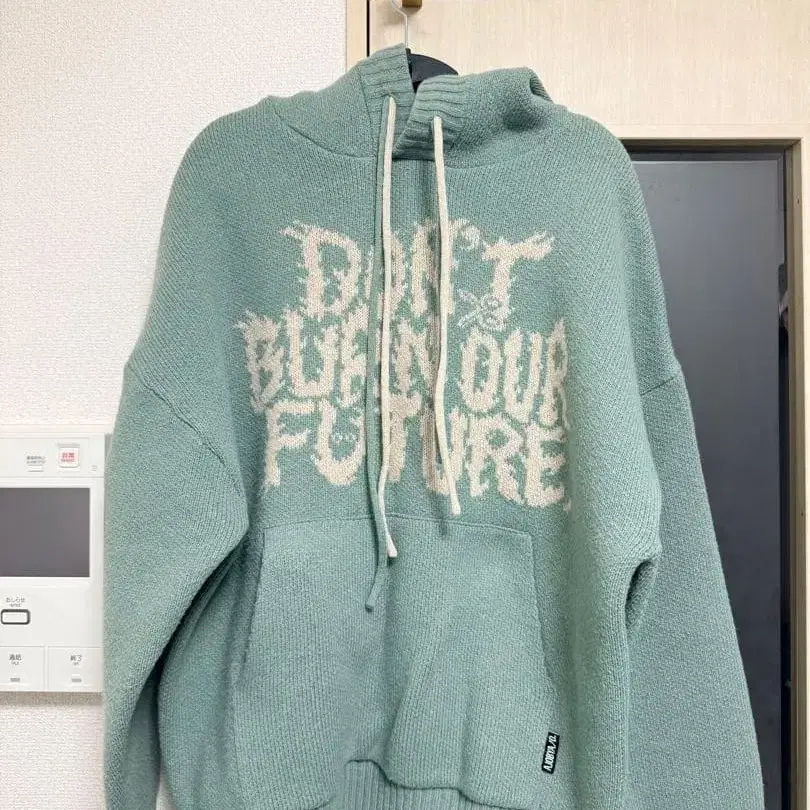 민트 그린 니트 후드티, 프론트에 메시지 프린트 있음. - 브랜드: AJOBYAJO - 색상: 민트 그린 - 디자인: 프론트 프린트 ( Don't ruin our future ) - 스타일: 후드 부착 ( 후드티 ) - 소재: 니트 - 사이즈: 36 (L) 기장 73cm 가슴 너비 60cm 개인 측정으로 인한 약간의 오차는 양해 부탁드립니다. 방문해 주셔서 감사합니다.
