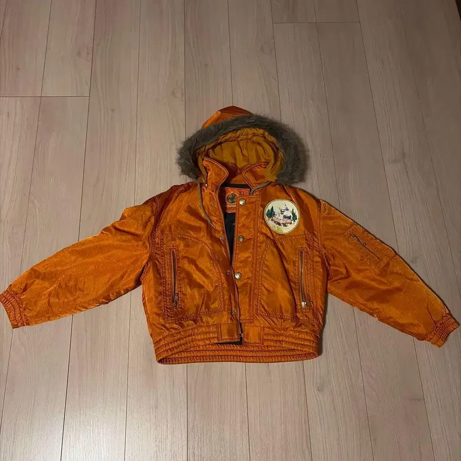 오렌지 밀리터리 퍼 자켓 후드 부착