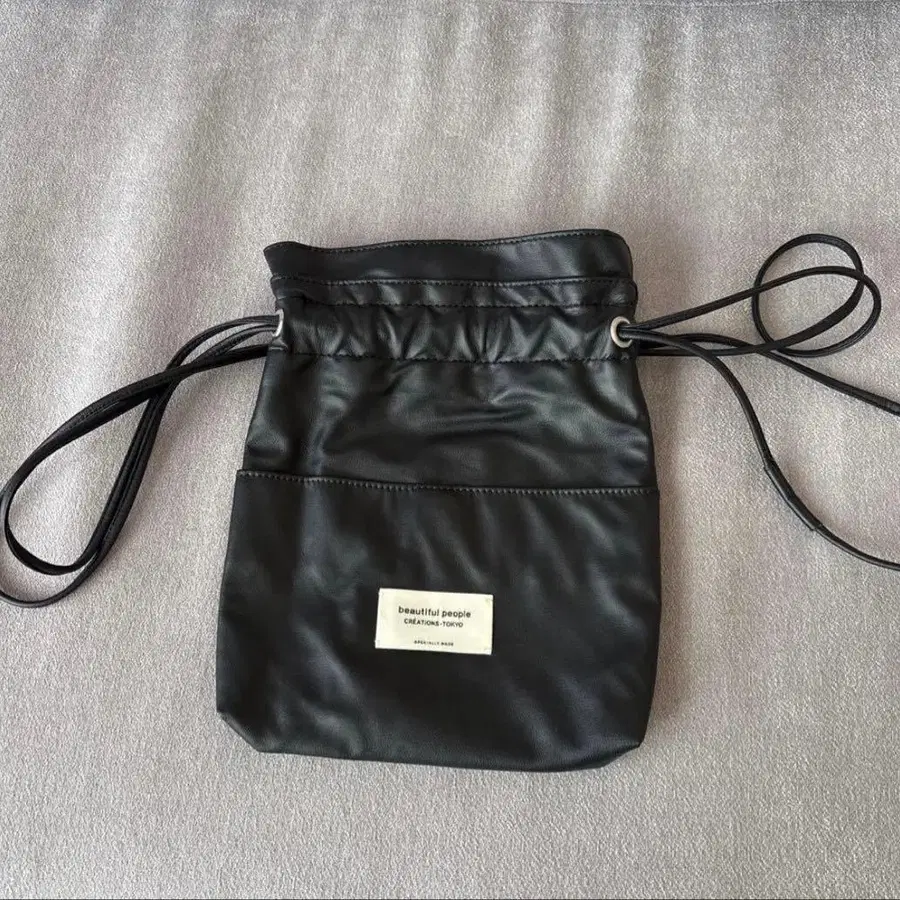 합성 피혁 드로우 스트링 숄더백. 내부는 안감 부착으로 사용하기 쉬운 디자인입니다. - 색상: 블랙 - 브랜드: beatiful people - 소재: 합성 피혁 - 디자인: 드로우 스트링 방식 - 내부: 안감 부착 2회 정도밖에 사용하지 않아 매우 깨끗한 상태입니다.