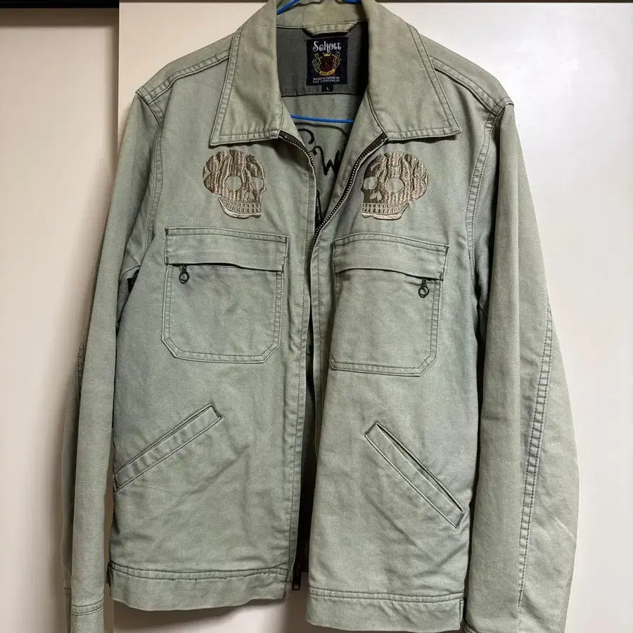 스컬 자수가 특징인 Schott의 밀리터리 자켓. - 브랜드: Schott - 사이즈: L - 디자인: 스컬 자수 - 디자인: 뉴욕 스컬 디자인 - 소재: 코튼 빈티지 제품입니다. 방문해 주셔서 감사합니다. 사이즈 - L