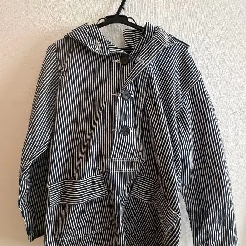 자동 번역되었어요. 원문보기히코리 스트라이프 후드 부착 풀오버형 워크 스모크입니다.