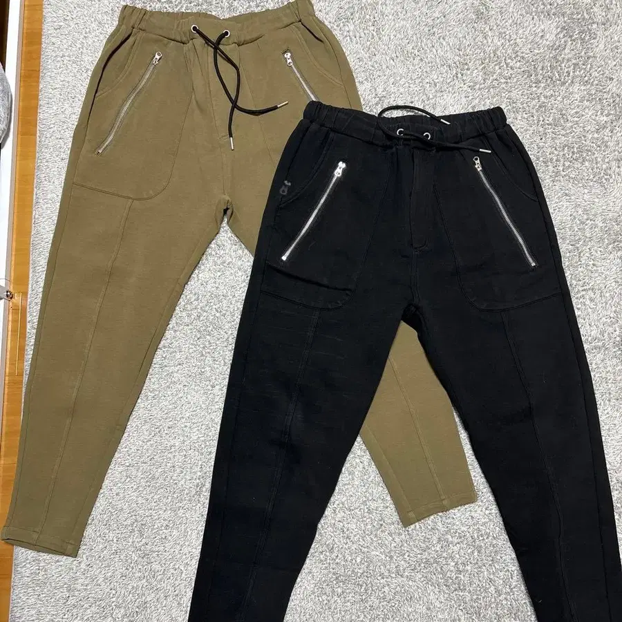 올리브와 블랙 두 가지 색상, M 사이즈의 CAMBIO 브랜드 조거 팬츠입니다. 2, 3회 착용했지만 좋아하는 맨투맨 팬츠 스타일이 아니어서 판매합니다.