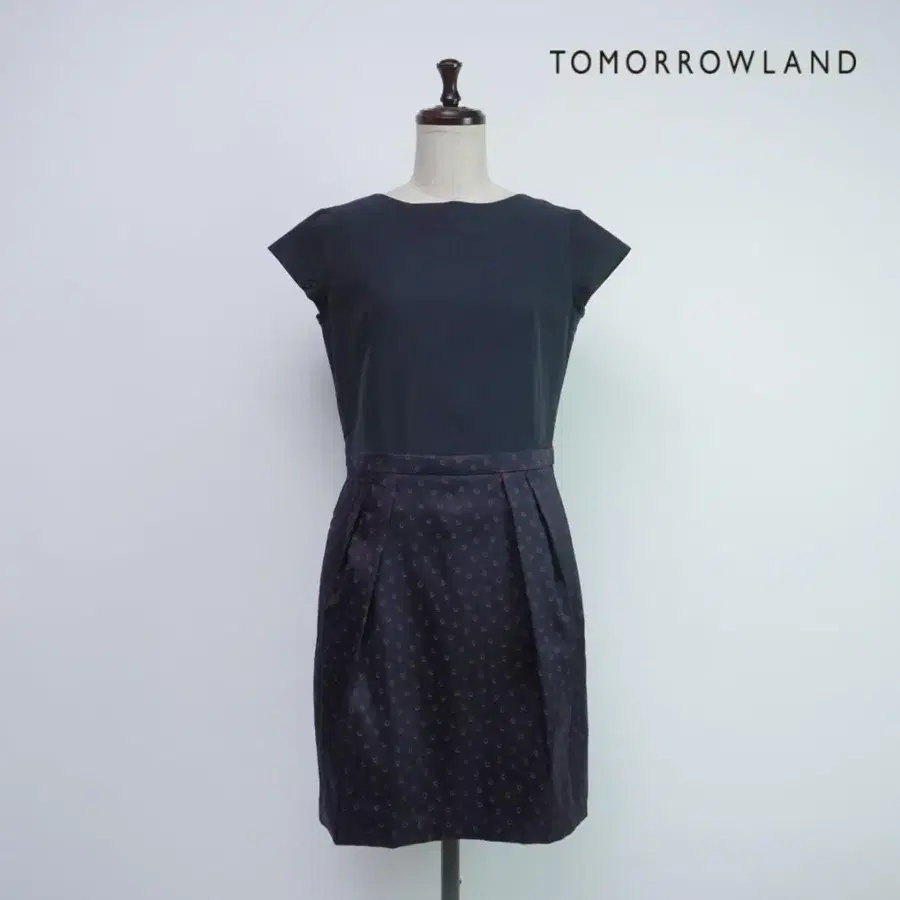 자동 번역되었어요. 원문보기새상품급 TOMORROWLAND 투모로우랜드 실크 도킹 도트 반팔 무릎 기장 원피스 안감 있음 여성용 블랙 네이비 사이즈 38*QC377