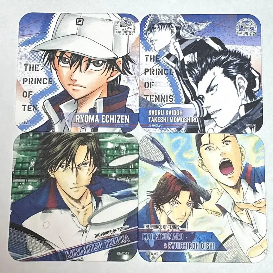 테니스의 왕자님 대원화전 20th 전국 투어 코스터 청춘학원 4장 세트 입니다. 즉시 구매 ⭕ 테니스의 왕자님 테니프리 원화전 청춘학원 청학 에치젠 료마 테즈카 쿠니미츠 오이시 슈이치로 키쿠마루 에이지 카이도 카오루 모모시로 타케시 코스터 카드 아트 코스터