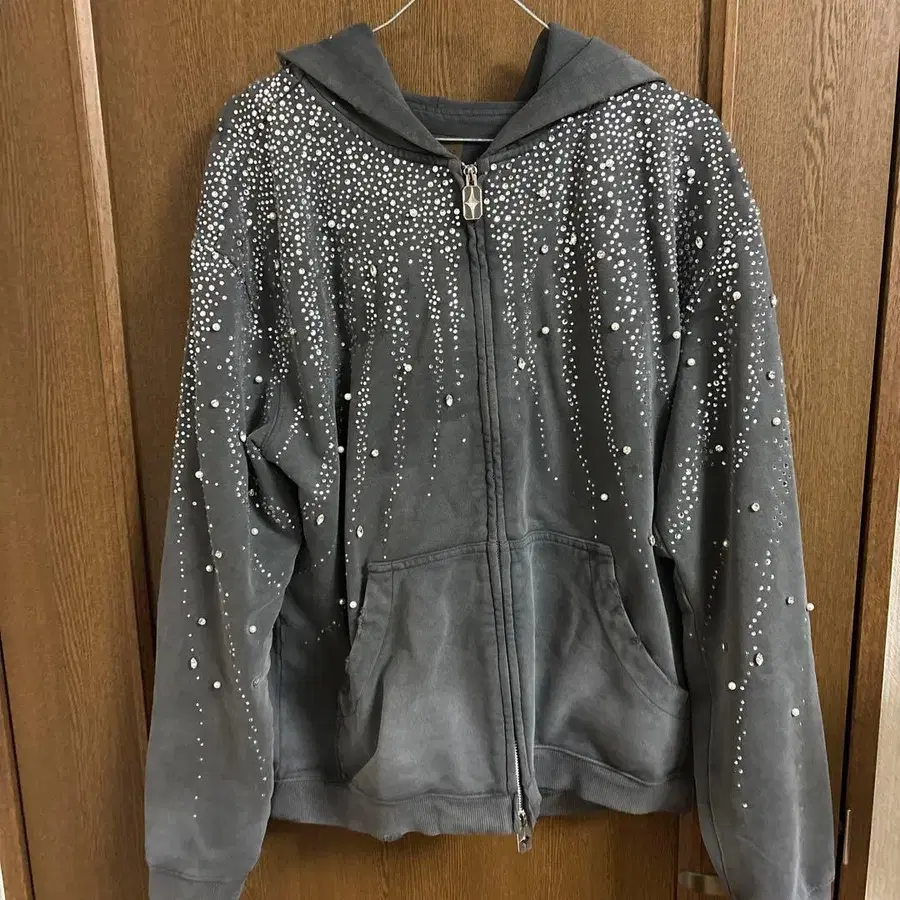 비즈 장식이 들어간 그레이 색상의 풀 집업 후드티. - 브랜드: BIRTH OF ROYAL CHILD - 색상: 그레이 - 디자인: 비즈 장식 - 후드: 있음 - 지퍼: 풀 집업 - 택: 있음 방문해 주셔서 감사합니다. 사이즈 - M
