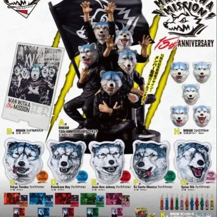 제일복권 MAN WITH A MISSION 15th ANNIVERSARY 1 로트 풀세트 + 라스트 원상 ※ 미사용 새상품입니다. 복권권, 홍보 포스터 포함. ※ 반려동물, 흡연자는 없습니다. ※ 할인 협상은 삼가해 주십시오. [ 모듬 내용 ] A상 MWAM 15th ANNIVERSARY 피규어 B상 MWAM 빅 멀티 스탠드 C상 Tokyo Tanaka 페이스 쿠션 D상 Kamikaze Boy 페이스 쿠션 E상 Jean-Ken Johnny 페이스 쿠션 F상 DJ Santa Monica 페이스 쿠션 G상 Spear Rib 페이스 쿠션 H상 MWAM 페이스 마그넷 I상 MWAM 클리어 파일 스티커 세트 J상 MWAM 핸드 타월 K상 MWAM ぽこっとちゃーむ 라스트 원상 MWAM 15th ANNIVERSARY 비주얼 타월