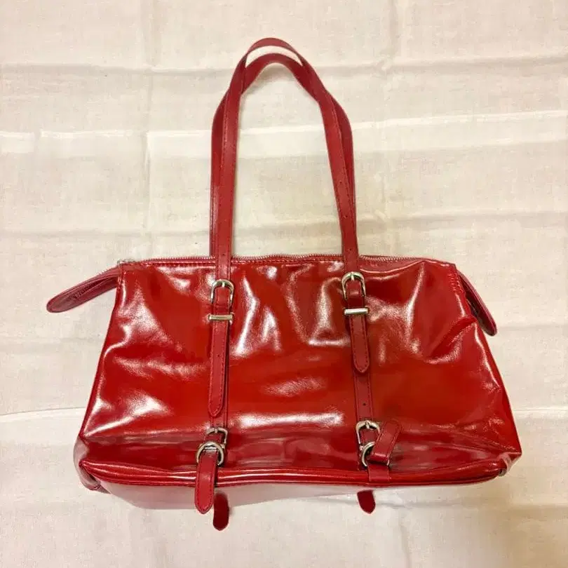 광택 있는 빨간색 핸드백, 버클 스트랩으로 스타일리시함. 이미지와 같이 내부에 약간의 얼룩이 부착되어 있습니다. 양해 부탁드립니다. - 색상: 빨간색 - 디자인: 광택 마감 - 특징: 버클 스트랩 방문해 주셔서 감사합니다. 색상 - 레드 계열 얼룩, 찢김 등 - 있음