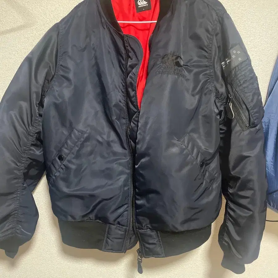 네이비 MA-1 자켓, 자수 디자인 포함. - 브랜드: CANterbury - 모델명: MA-1 자켓 - 색상: 네이비 - 디자인: 자수 포함 (국기와 별) 이것 하나만으로도 바이크를 탈 수 있을 정도로 따뜻합니다. 방문해 주셔서 감사합니다. 사이즈 - L