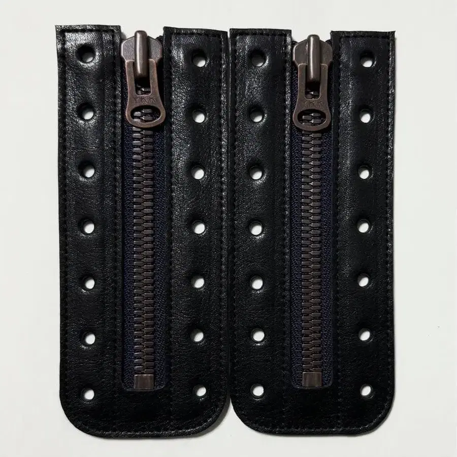 블랙 가죽과 YKK 엑셀라 8호 지퍼를 사용했습니다. 테이프 색상은 네이비입니다.