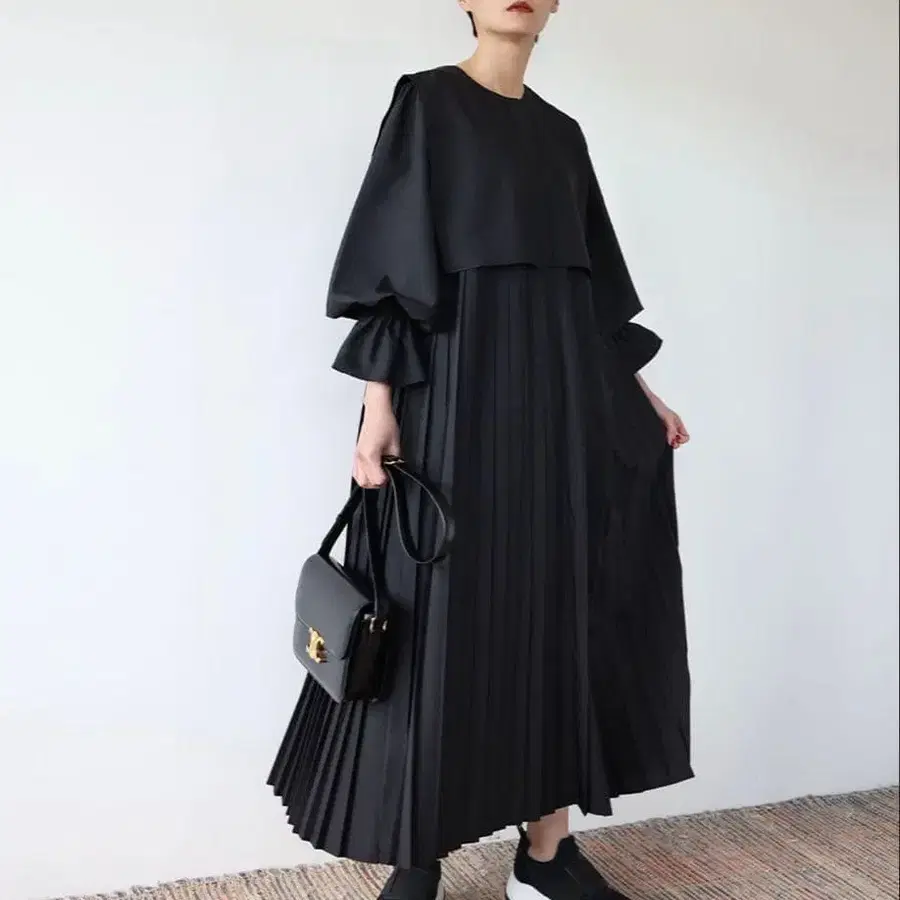 완판템 SNIDEL 벌룬 프릴 슬리브 I라인 원피스 블랙