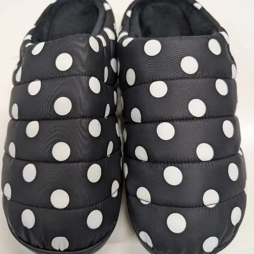 subu의 이번 시즌 가장 인기 있는, 블랙과 화이트 도트 무늬 슬립온 샌들, 패딩으로 쾌적한 착용감. - 색상: 블랙과 화이트 도트 무늬 - 브랜드: subu - 디자인: 슬립온 스타일 - 소재: 나일론풍 원단 - 밑창: 러버 솔 - 쿠션성: 패딩 처리 - 사이즈: [ 0 ] 22.0-23.5cm