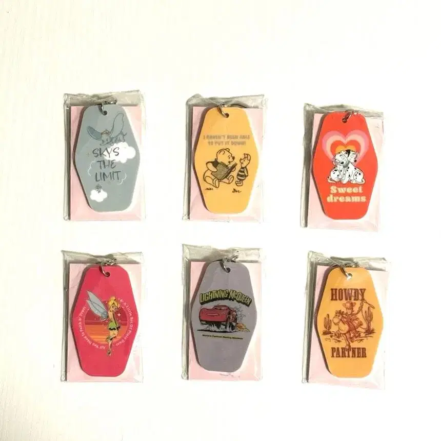 유니크한 캐릭터가 그려진 키링 6개 세트.