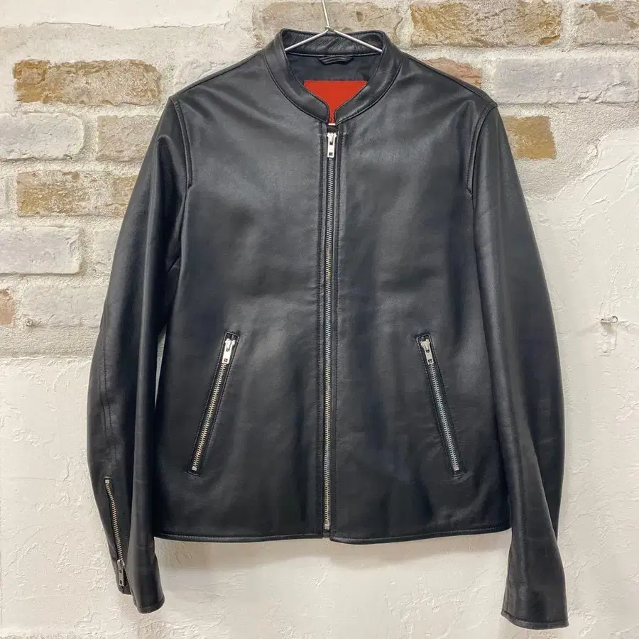 심플하고 스타일리시한 블랙 가죽 싱글 라이더 자켓.