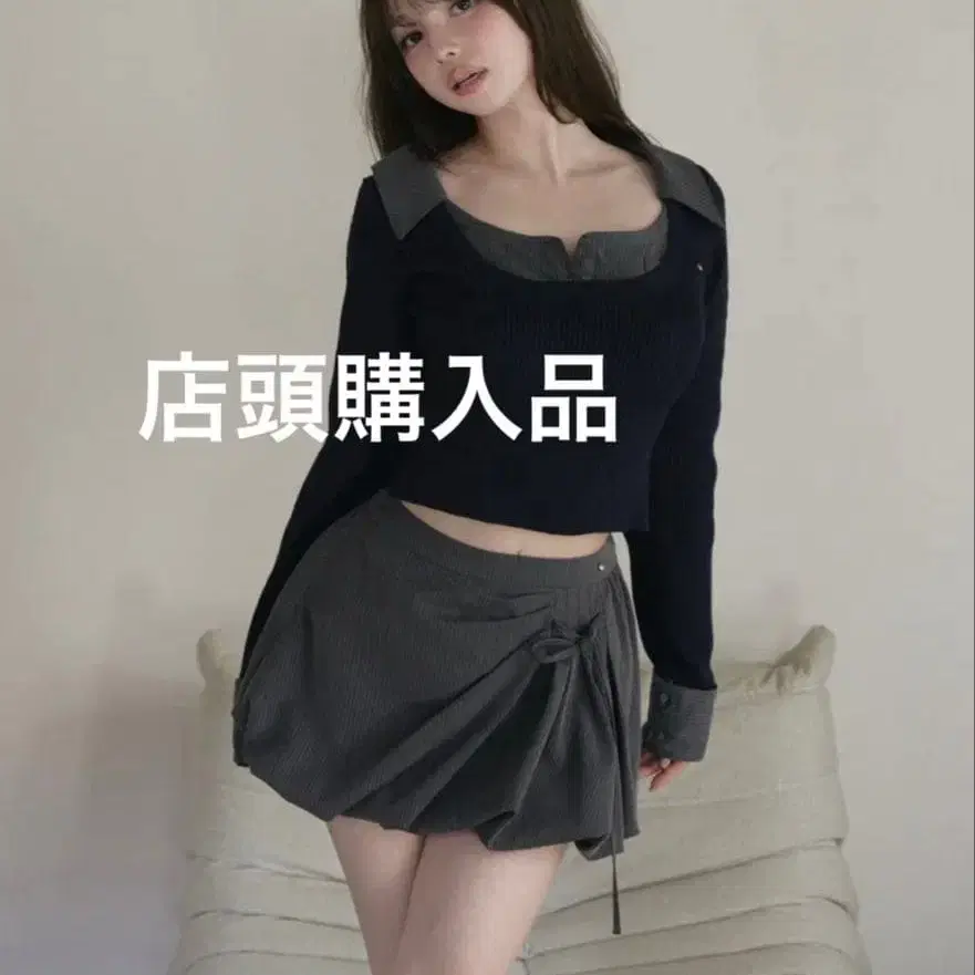 aimeine 불규칙 밑단 비대칭 리브 니트 스커트 상하의 세트