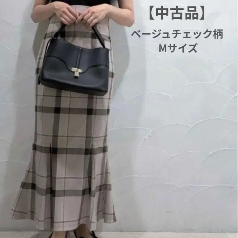 베이지와 체크 무늬의 플레어 스커트