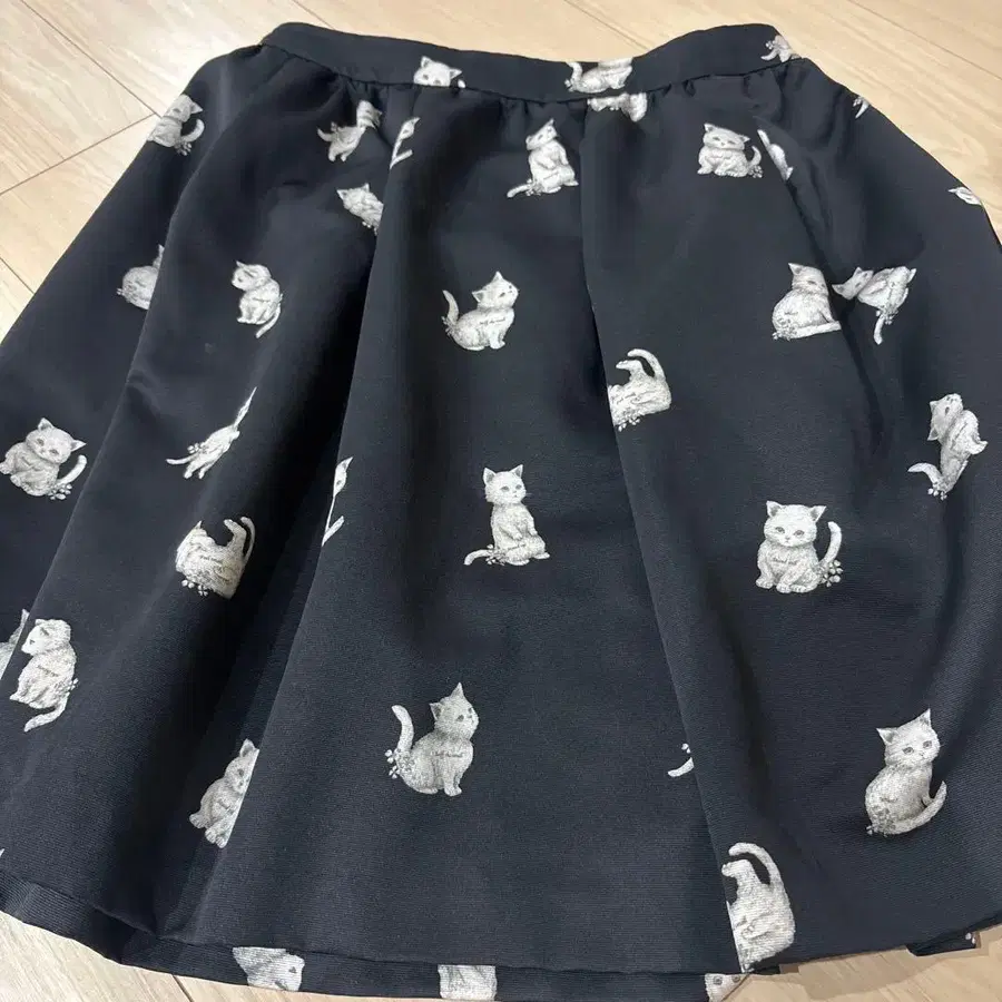 프랑슈리페 고양이 무늬 미디 스커트 블랙 고양이가 정말 귀여워요.