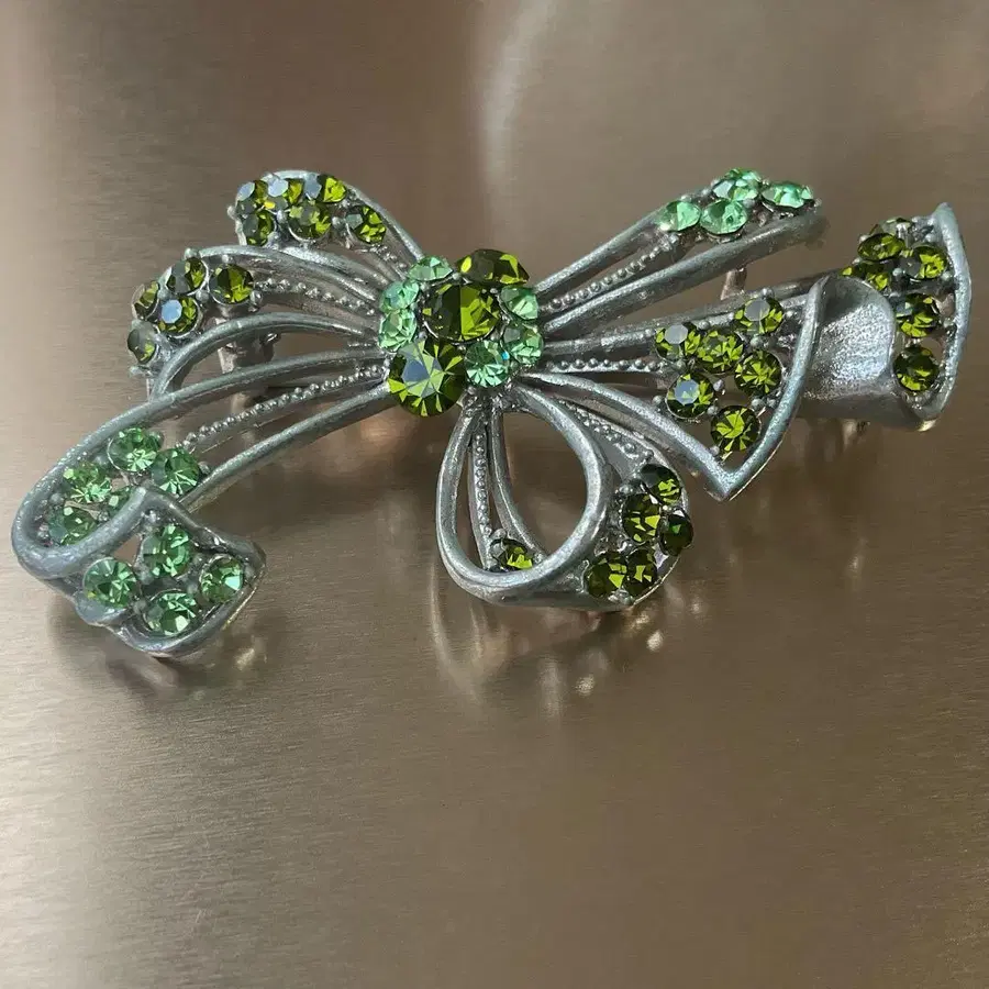 빈티지 브로치 앤티크 브로치 리본 모티브 녹색 그린 실버 큐빅 빅 사이즈 레트로 장식품 엘레강트 고져스 포멀 발표회 무대 의상