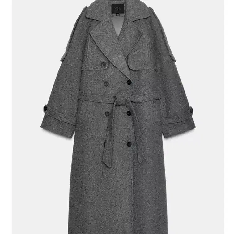 ZARA 더블 브레스트 코트 벨트와 루프 포함 그레이 멜란지 M 인기 완판템 노치드 라펠, 롱 슬리브, 루프 포함 롱 코트, 프론트에 웰트 포켓, 동일 원단의 조절 가능한 타이 벨트 포함, 동색 안감, 프론트는 단추식 더블 브레스트 사양 그레이 멜란지 1255/892/803 더블 브레스트 코트 벨트와 루프 포함 사이즈 - M