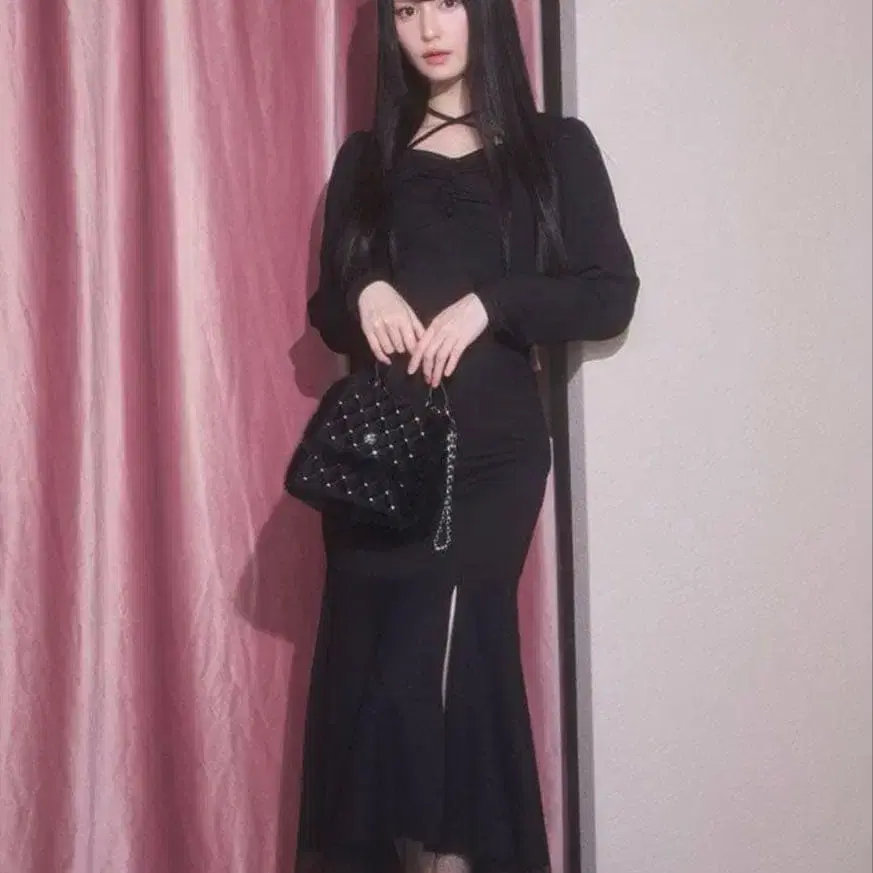 Rili tokyo 벨 슬리브 슬릿 머메이드 원피스