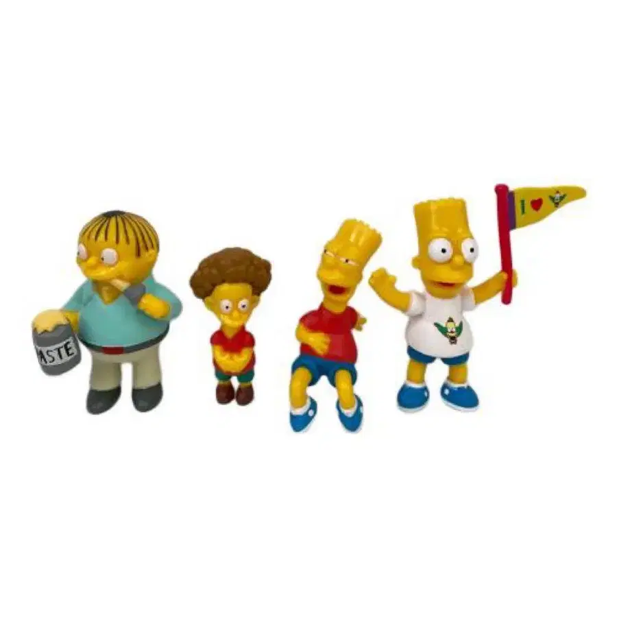바트 심슨을 포함한 피규어 4개 세트, 약 10cm 플라스틱 재질.
