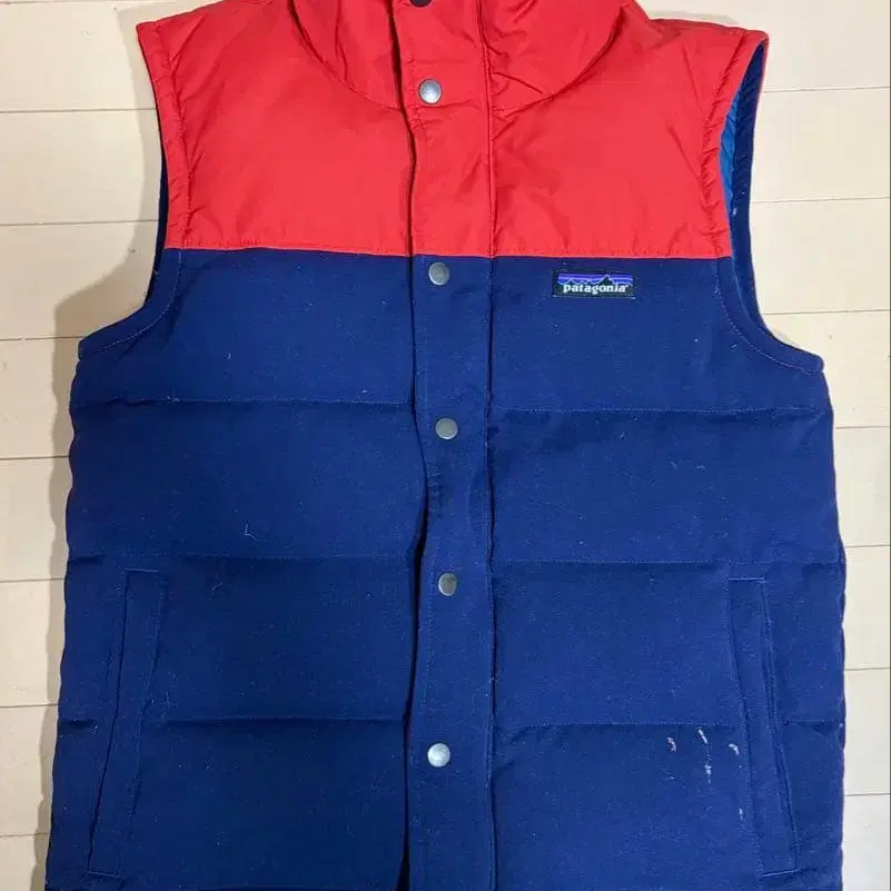 빨간색과 파란색 배색이 특징인 patagonia의 XS 사이즈 다운 베스트. 구제 의류 매장에서 8000엔 정도에 구매했지만, 평소 사용에는 좋으나 업무만 하고 있어 입을 기회가 없어 판매합니다.