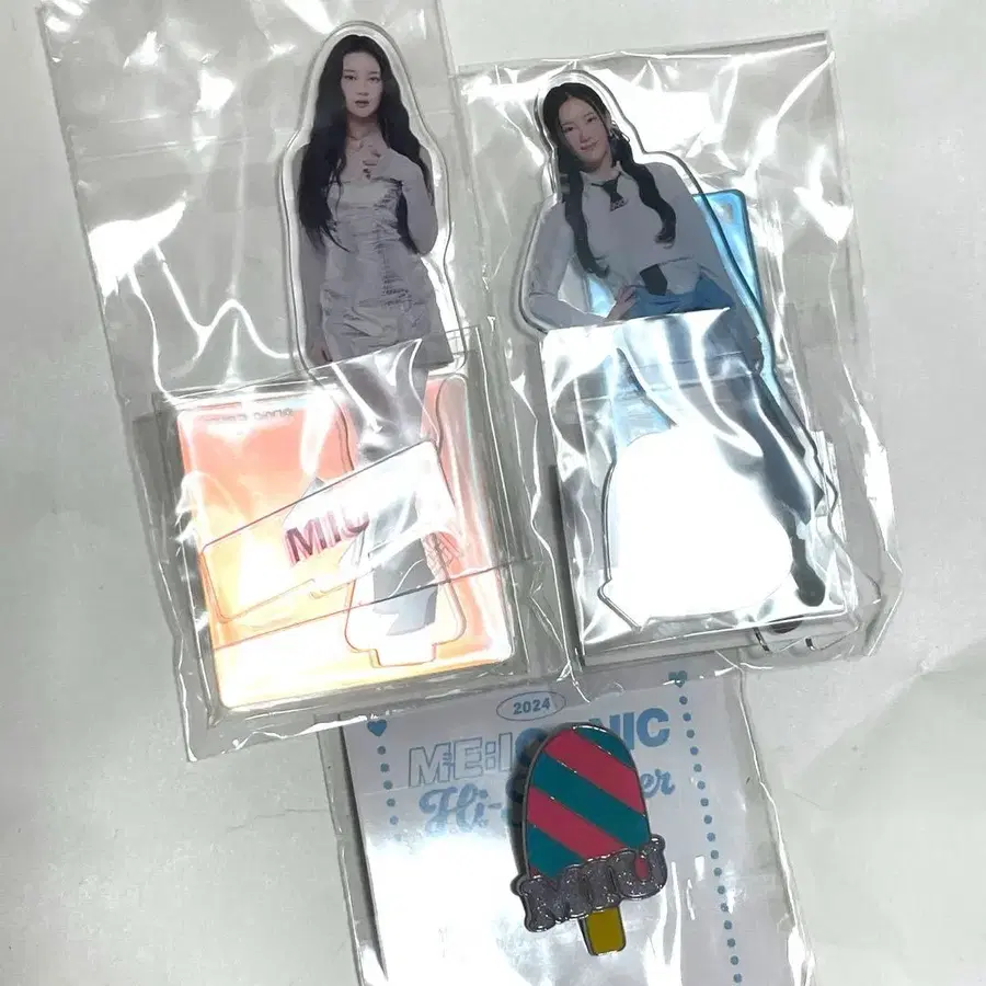 MIU 아크릴 스탠드 2종, 핀 배지 세트입니다. - ME:I MIU - 아크릴 스탠드는 둘 다 미개봉 새상품 - 핀 배지는 미세한 흠집이 있습니다. 방문해 주셔서 감사합니다. #미아이 #미우