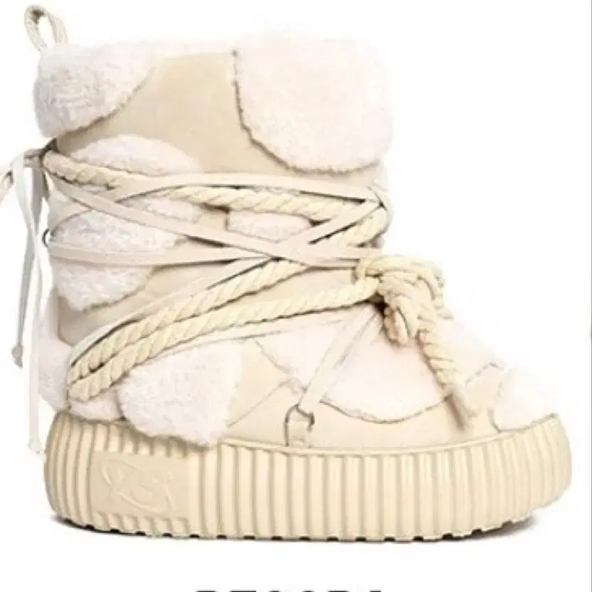 퍼와 합성 피혁을 사용한 크림색 어그 부츠. - 모델명: PECORA - 색상: 크림색 - 소재: 퍼와 합성 피혁 - 밑창 디자인: 리브 밑창 방문해 주셔서 감사합니다.