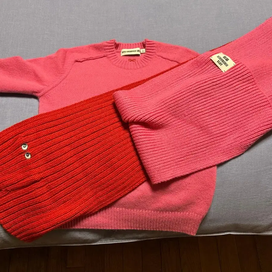 핑크와 오렌지 색상의 리브 디자인 긴팔 니트 스웨터. - 브랜드: ANYA HINDMARCH - 색상: 핑크와 오렌지 - 디자인: 리브 짜임 소매 - 택: ANYA HINDMARCH 택 방문해 주셔서 감사합니다. 유니클로 캐시미어