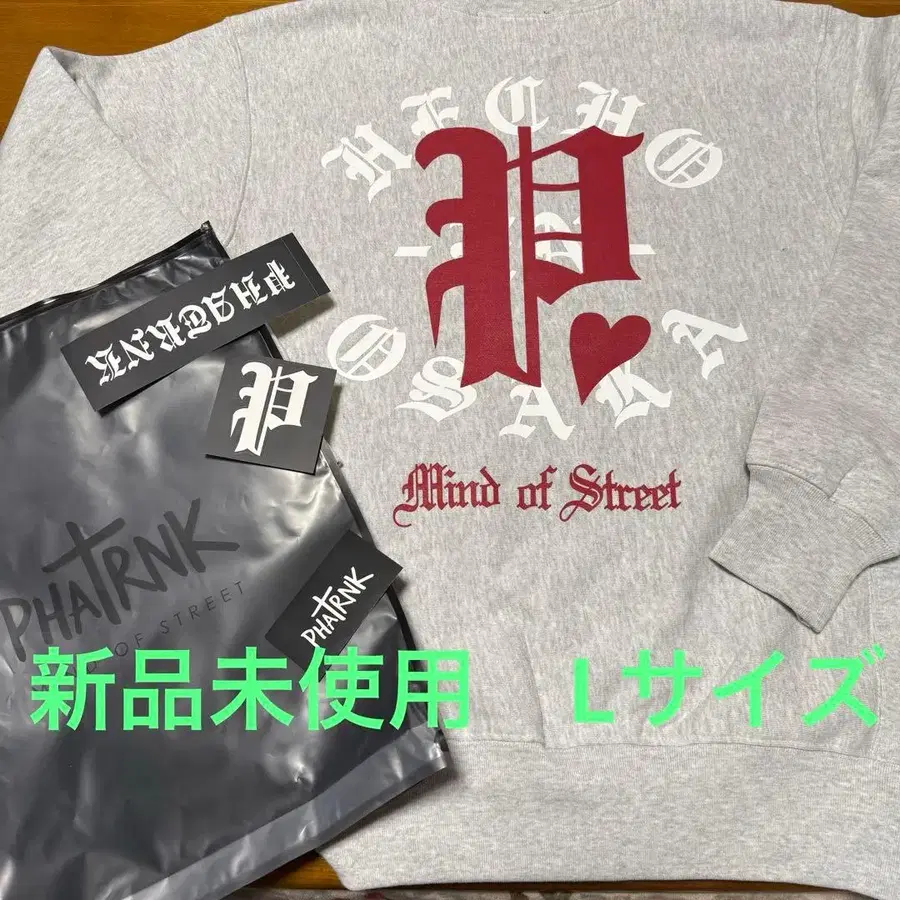 그레이 색상의 PHATRNK 맨투맨 트레이닝복, 백 프린트 디자인.