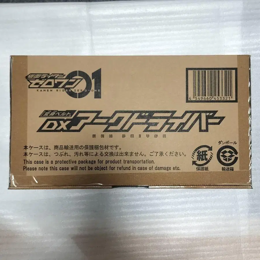가면라이더 제로원 DX 아크 드라이버 집 안 어두운 곳에 보관했던 것입니다. 미개봉 상태이므로 내용물의 상태 확인은 하지 않았으니 양해 부탁드립니다. 상자에 완충재를 감싸고 송장을 부착하여 발송하겠습니다. 잘 부탁드립니다.