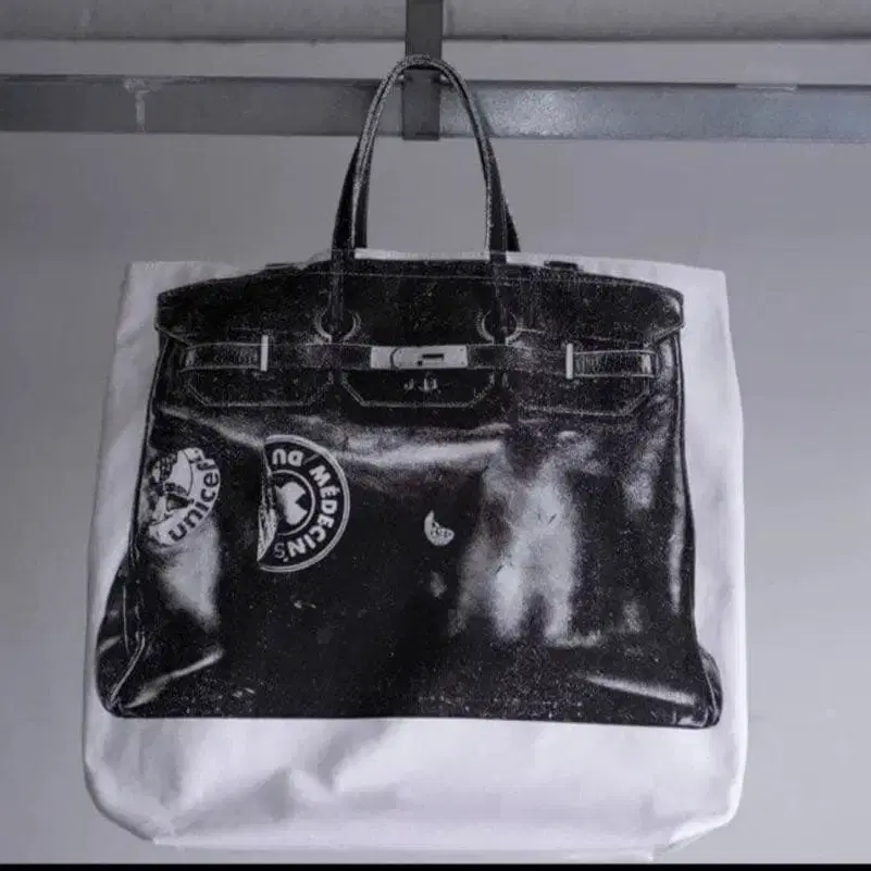 [버킨]의 프로토타입 [제인 버킨]을 본인이 사용했을 때 붙어 있던 UNICEF, 국경없는의사회 스티커를 벗겨진 상태까지 충실하게 재현하고, JB 이니셜을 포함해 전사풍으로 프린트했습니다. 오리지널 바디는 도톰한 코튼을 사용했으며, 원 사이즈에 맞춰 제작했습니다. 핸들 부분과 JB 소유의 프로토타입에만 부착되어 있던 숄더 벨트도 모두 원 사이즈로 재현했습니다.