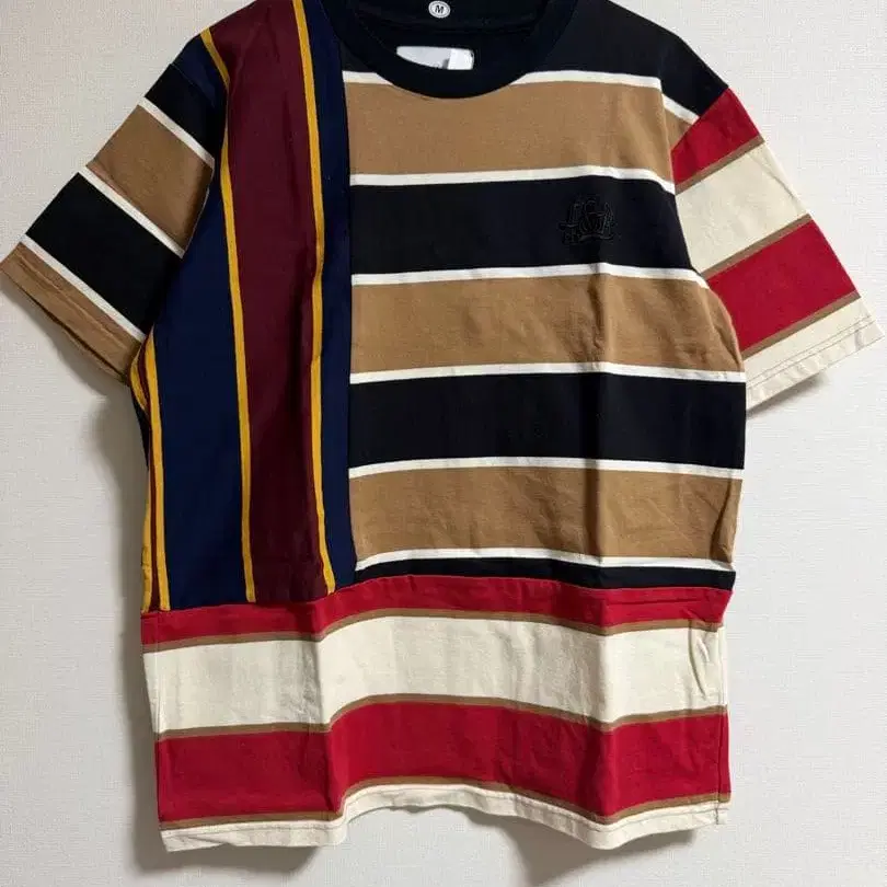 라프앤비의 멀티 컬러 스트라이프 디자인, 코튼 100% T셔츠.