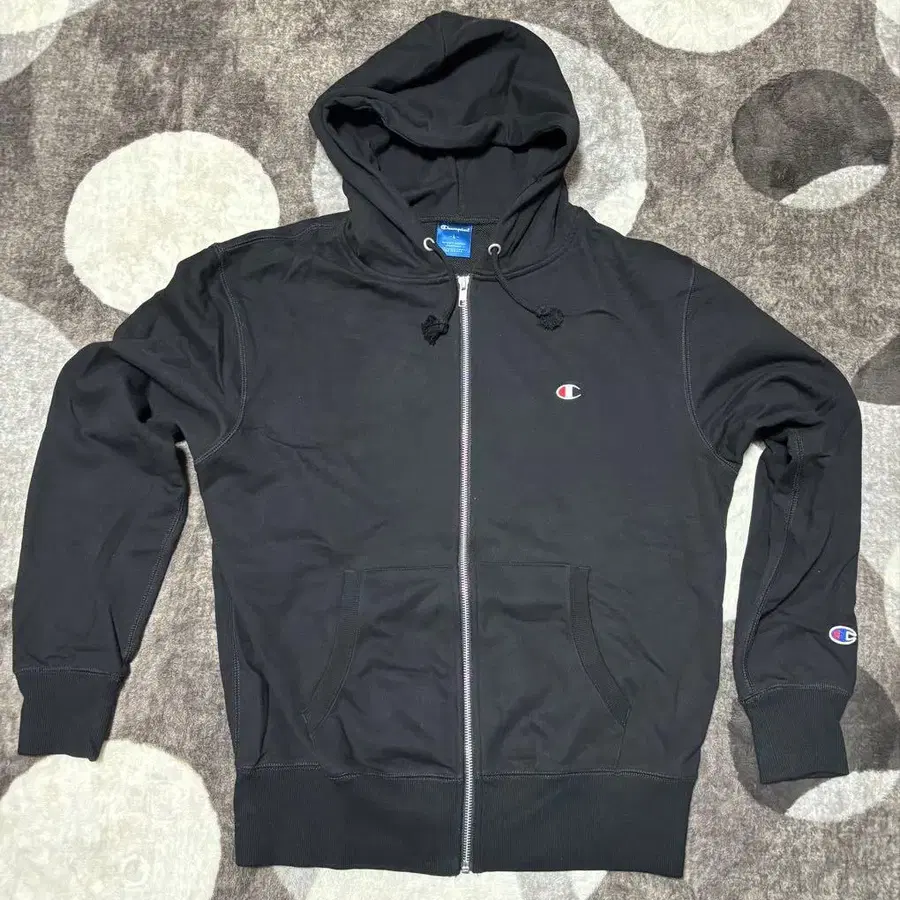 챔피온의 블랙 풀 집업 후드티.