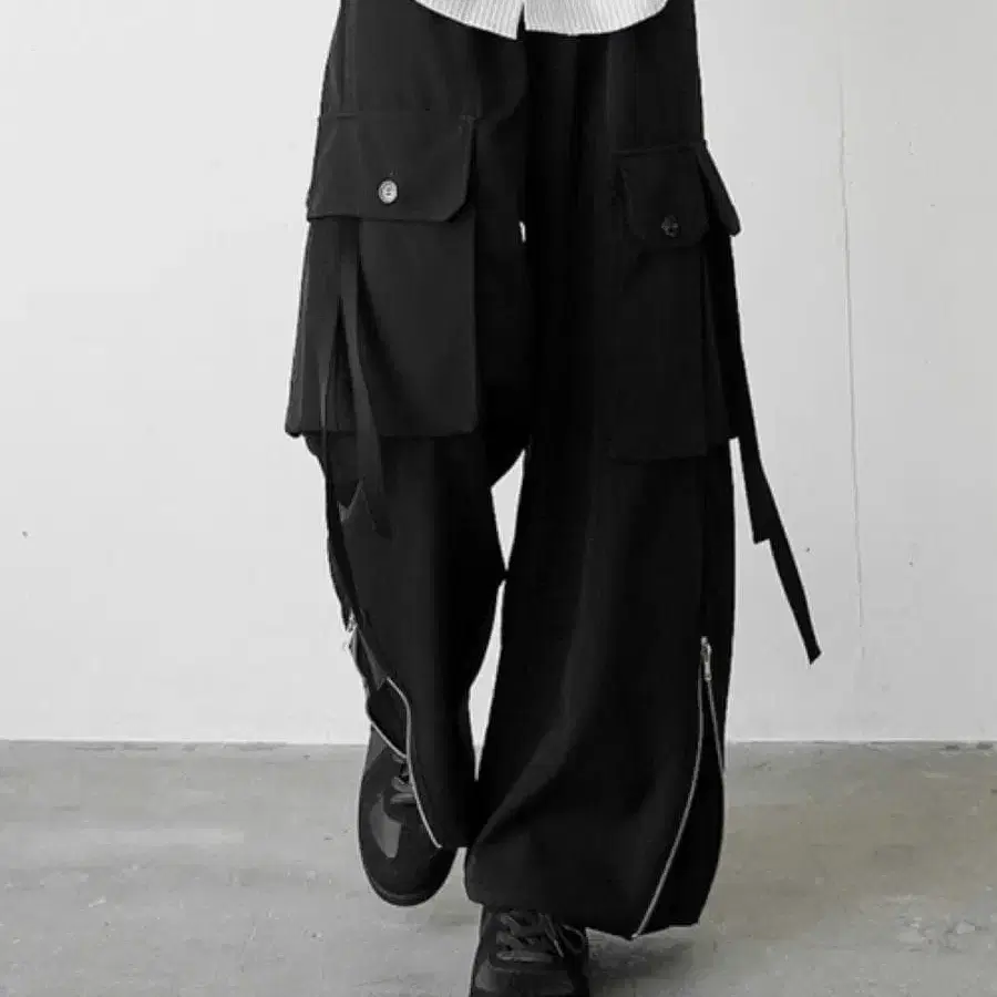 블랙 카고 팬츠 사이드 지퍼 포함