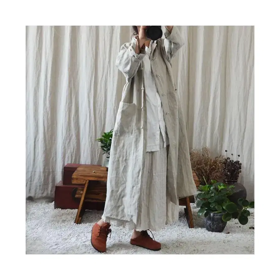 [ 즉시 발송 ] 여성용 코튼 린넨 코트 무지 심플 차이나 롱 원피스