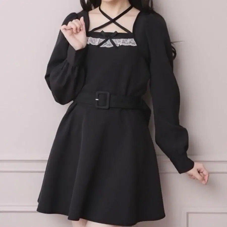 pium 피움 프론트 리본 초커 티어드 미니 원피스