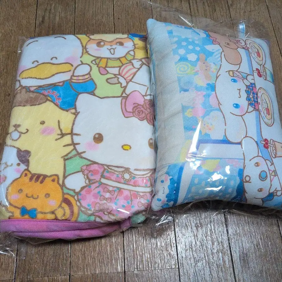산리오 퓨로랜드 한정판 출시 해피 백 (시나몬) 담요 쿠션 2종 세트 산리오 퓨로랜드