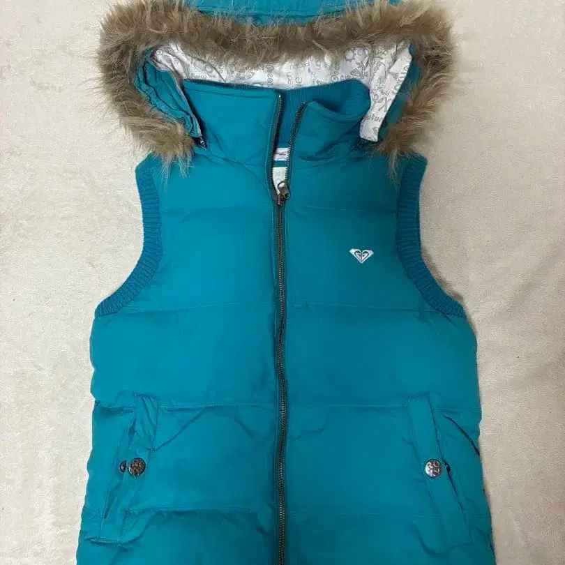 터콰이즈 색상의 ROXY 후드 부착 다운 베스트. 퍼가 달린 따뜻한 디자인. - 브랜드: ROXY - 색상: 터콰이즈 - 디자인: 후드 부착, 퍼 부착 - 안쪽 디자인: 로고 디자인 - 포켓: 앞면에 버튼 부착 포켓 방문해 주셔서 감사합니다.