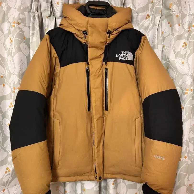 자동 번역되었어요. 원문보기후드 부착 다운 자켓으로, 브라운과 블랙의 배색이 특징입니다.