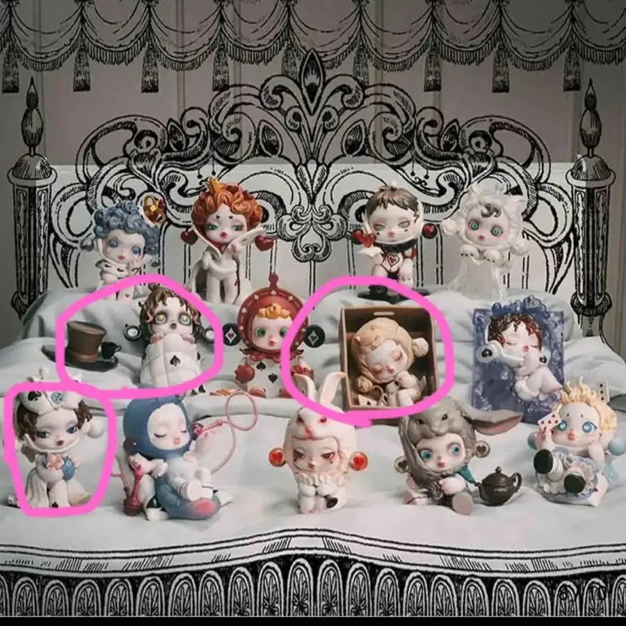 SKULLPANDA Everyday Wonderland 원형이 있는 피규어 3개 세트입니다! 장식했었기 때문에 흠집이나 얼룩이 있을 수 있습니다. 카드는 포함되지 않습니다.