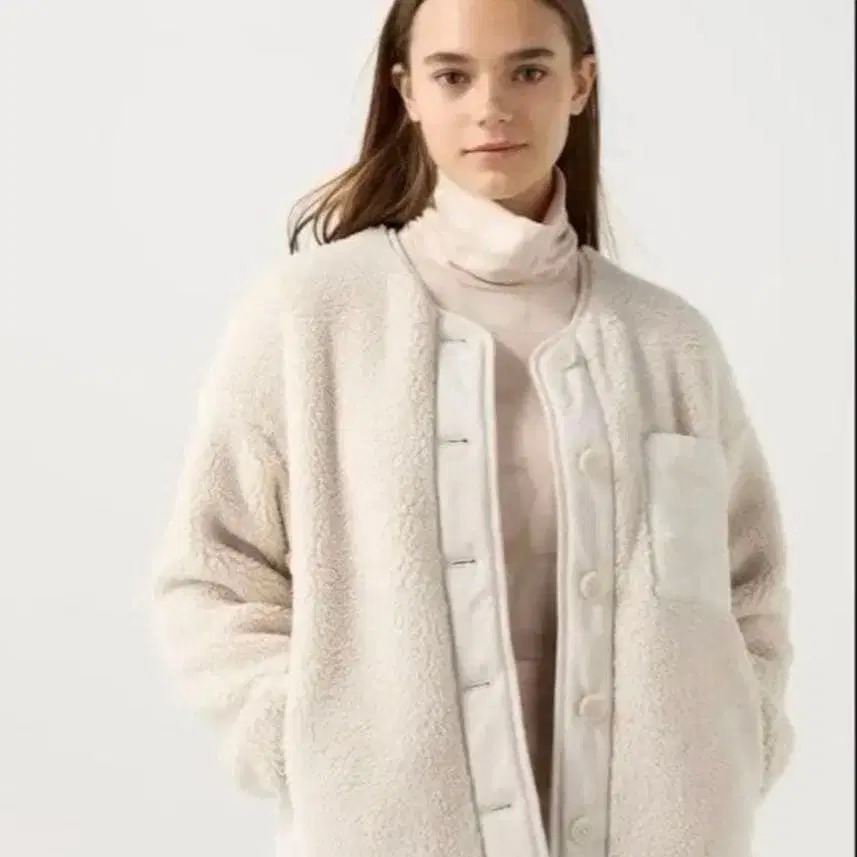 UNIQLO 플리스 자켓 보아 자켓 크림색