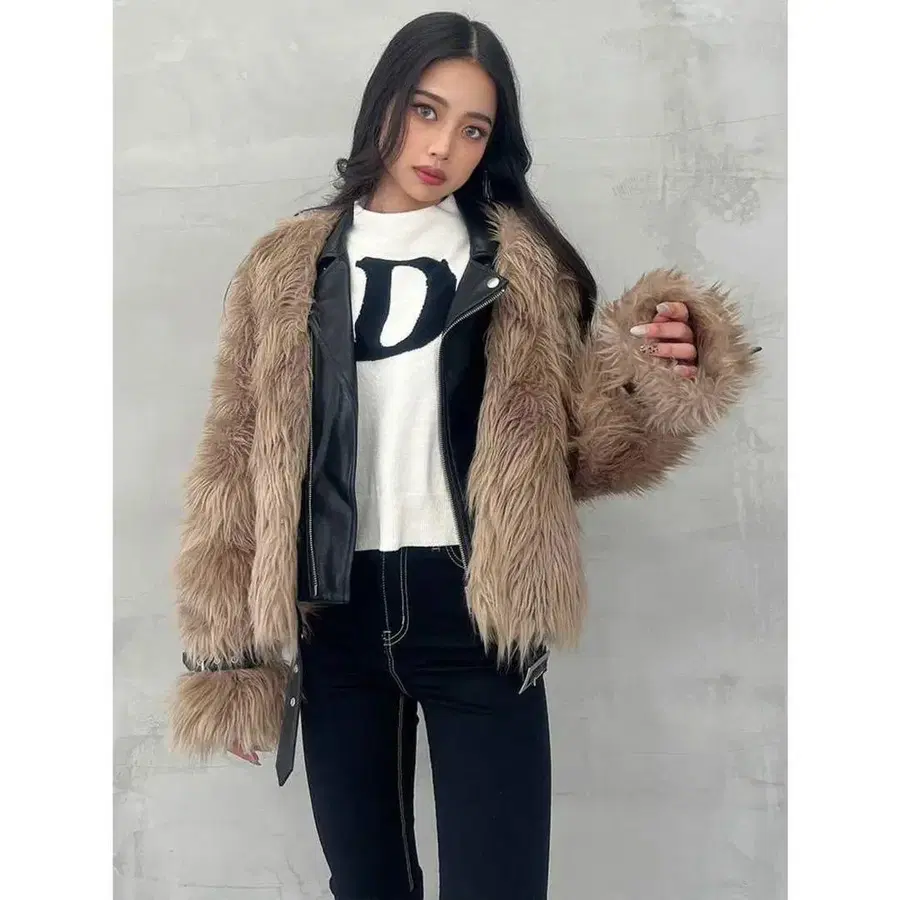 CUSTOM CULTURE 가죽풍 자켓 인조 모피