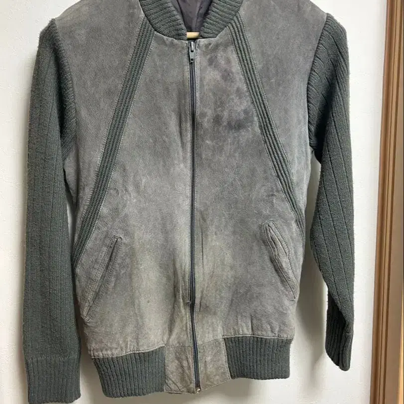 빈티지 스웨이드 가죽 니트 자켓 블루종