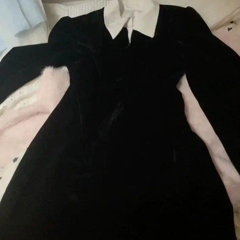 블랙 벨벳 소재에 화이트 옷깃이 특징인 긴팔 무릎 기장 원피스입니다. - 색상: 블랙 - 옷깃 색상: 화이트 - 디자인: 긴팔 무릎 기장 원피스 - 소재: 벨벳 방문해 주셔서 감사합니다.