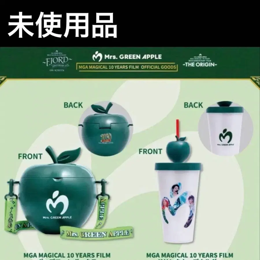 Mrs. GREEN APPLE MGA MAGICAL 10 YEARS DOCUMENTARY FILM 한 번도 봉투에서 꺼내지 않았습니다. 미세스 그린 애플 팝콘 박스 1개 드링크 홀더 1개 ★ 세트 상품 ★ ★ 미사용 새상품 ★  스트로우는 원래 없습니다.