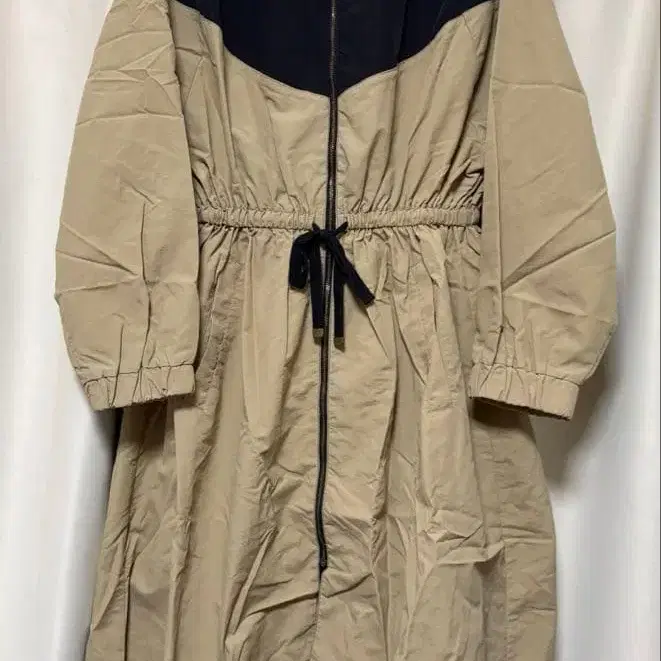 베이지와 네이비 트렌치코트, 집업 디자인에 허리밴딩 포함. - 색상: 베이지와 네이비 콤비네이션 - 디자인: 집업, 허리밴딩, 긴팔 - 스타일: 트렌치코트, 스프링 코트 - 특징: 후드 없음, 심플한 실루엣 방문해 주셔서 감사합니다. 사이즈 - FREE SIZE