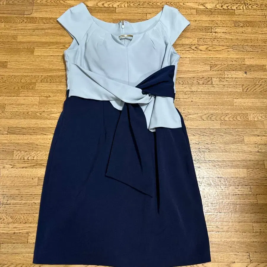 브랜드 - 쥬얼스 컬러 - 블루 x 네이비 거의 착용하지 않아 눈에 띄는 얼룩 등은 없습니다. 기장 - 86cm 허리 - 72cm 패드 있음 등 지퍼 디자인이 세련되어 성숙하게 연출할 수 있는 드레스입니다 ♪